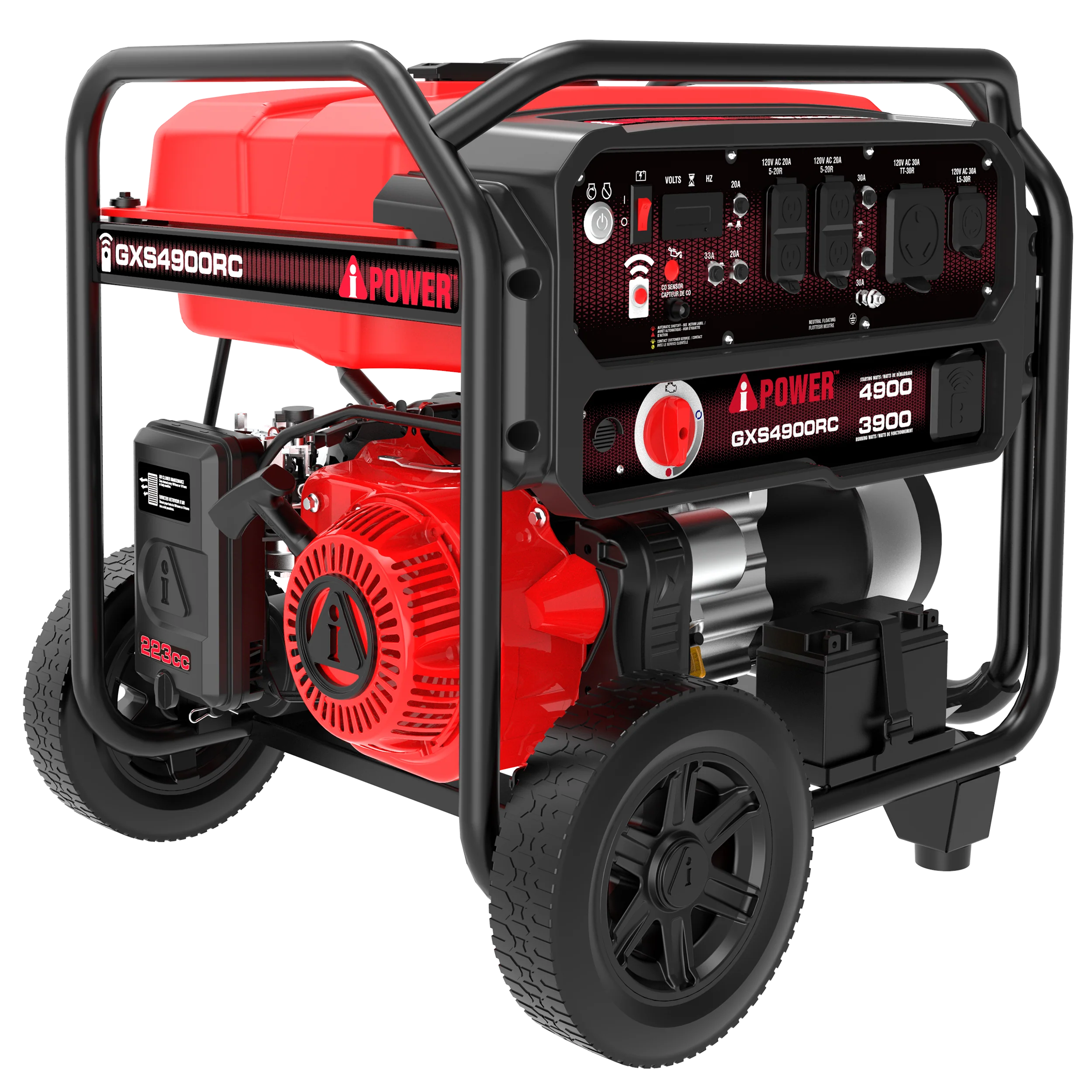 Powered by a performance series 223cc OHV engine with cast iron sleeve and low oil shutdown, the A-iPower Remote Control Generator has 4,900 starting watts and 3,900 running watts. The 6.3-gallon fuel tank offers extended run time of up to 20 hours at 25% load.
