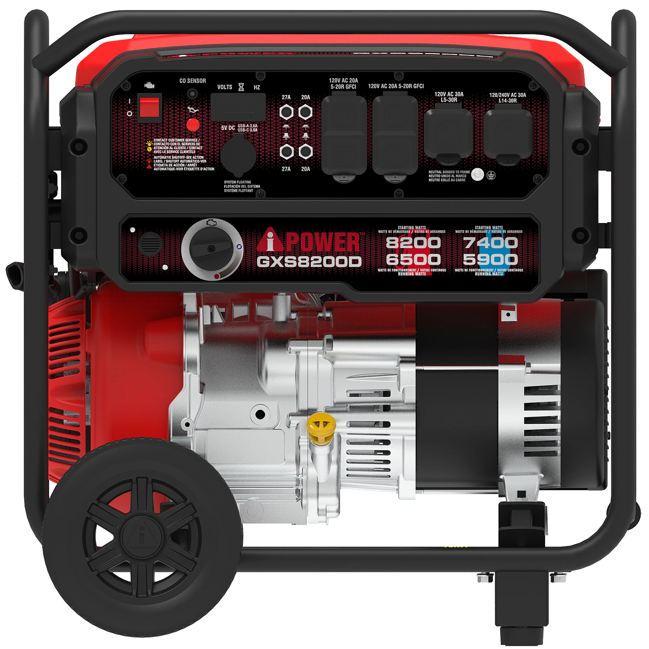 The A-iPower GXS8200D 8200-watt dual fuel generator has a 322cc performance series OHV engine with a cast iron sleeve and low oil shutdown. Offering 8,200 starting watts and 6,500 running watts on gasoline and 7,400 starting watts and 5,900 running watts on propane, the unit has a 6.3-gallon fuel capacity for up to 17 hours of runtime, offering flexibility while out on the road or during an emergency.