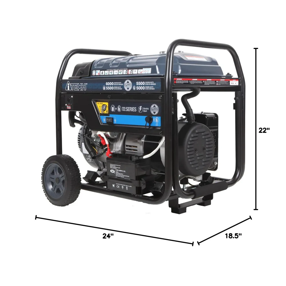 5000W / 6000W Portable Dual Fuel Generator , Electric Start, Gas & Propane Powered, CO Sensor AT10-260001