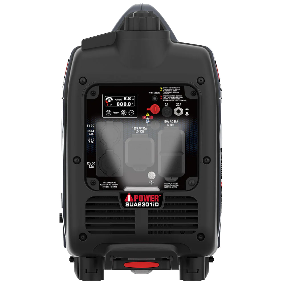 A-iPower’s newly designed SUA2301iD Dual Fuel Inverter Generator features an 80cc OHV high performance 4-cycle engine that offers 2,300 starting watts and 1,800 running watts on gasoline and 2,000 starting watts and 1,600 running watts on propane. At <3% THD of clean power output, it keeps sensitive electronics safe.