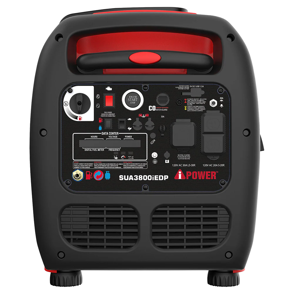 With a 223cc OHV high-performance 4-cycle engine, the SUA3800iEDP 3800-Watt Dual Fuel Inverter Generator offers 3,800 starting watts and 3,500 running watts on gasoline, and 3,500 starting watts and 3,200 running watts on propane. Running on gasoline or propane fuel offers flexibility while out on the road or during an emergency.